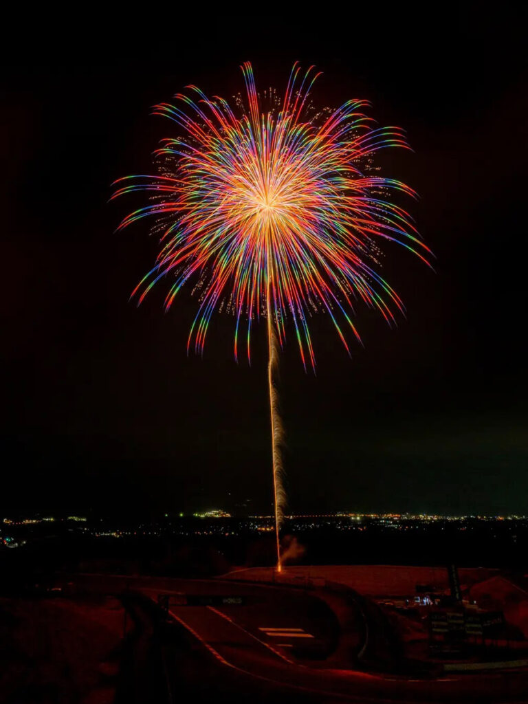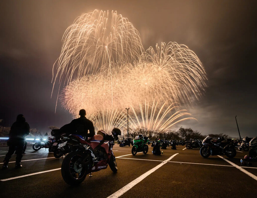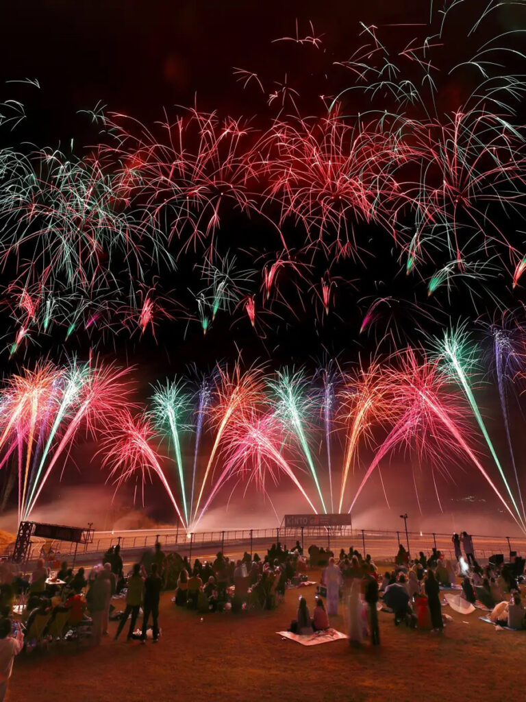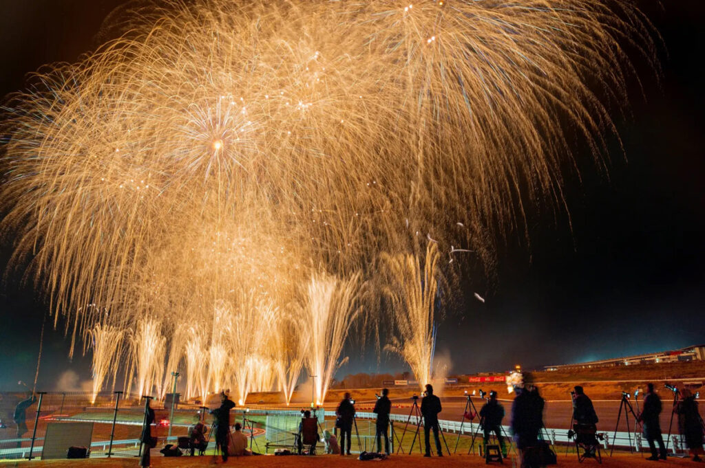一般的な花火大会は「一点から上がる」印象になりがちですが、ここではサーキットの広大な敷地を舞台に、横に広がるダイナミックな演出が期待できます。視界を大きく使った花火は、同じ“鑑賞”でも体感が変わるタイプの迫力です。
