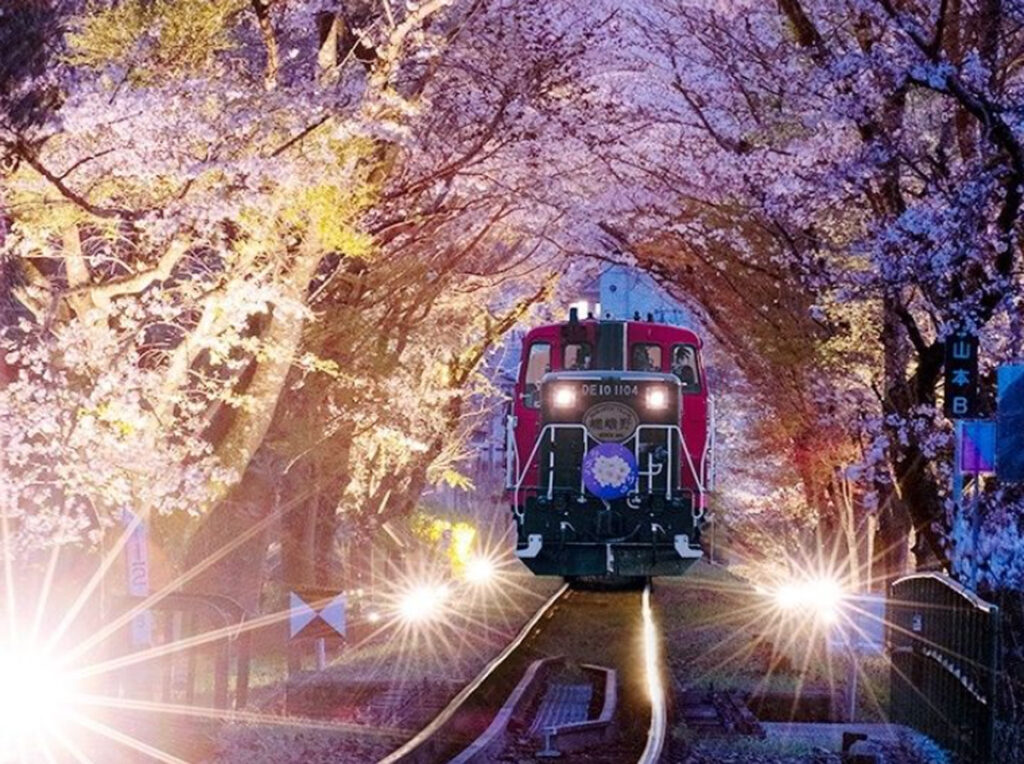 また京都では、嵯峨野トロッコ列車で夜桜を楽しむプランも紹介されています。ライトアップされた桜を車窓から眺めるというもので、移動中に春の景色を楽しめるのが魅力です。